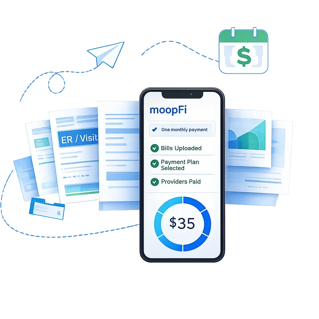 moopFi gives you a simple, secure way to upload, organize, and manage all your medical bills in one place. Consolidate expenses, unlock built-in savings, and gain clear control over what you owe. Create your account today and start saving on your medical bills.